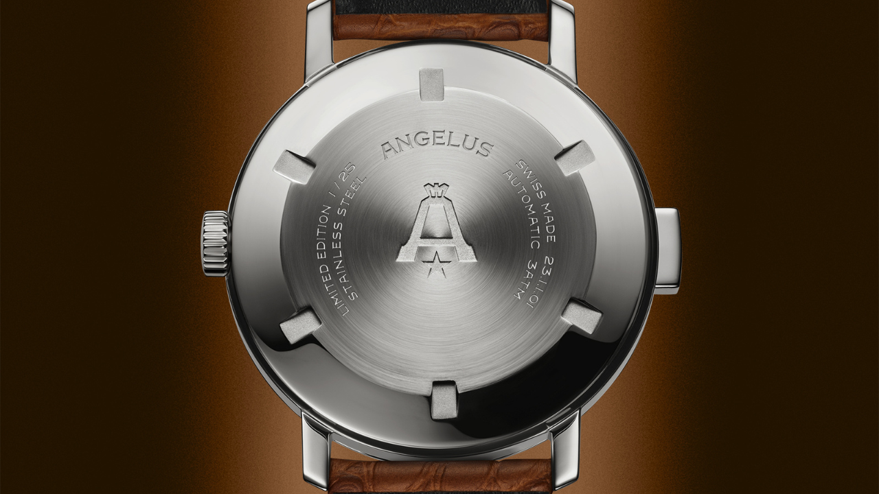 A tradição com mecanismos sonoros na Angelus remonta ao início da marca. Em 1896, os irmãos Albert e Gustav Stolz registraram um dos primeiros patentes da maison: um regulador de marche silencioso para mecanismos de repetição. Décadas depois, durante a Primeira Guerra Mundial, a Angelus foi além e desenvolveu relógios de repetição em Braille para soldados que perderam a visão, combinando índices com marcações táteis para leitura por toque ou som.