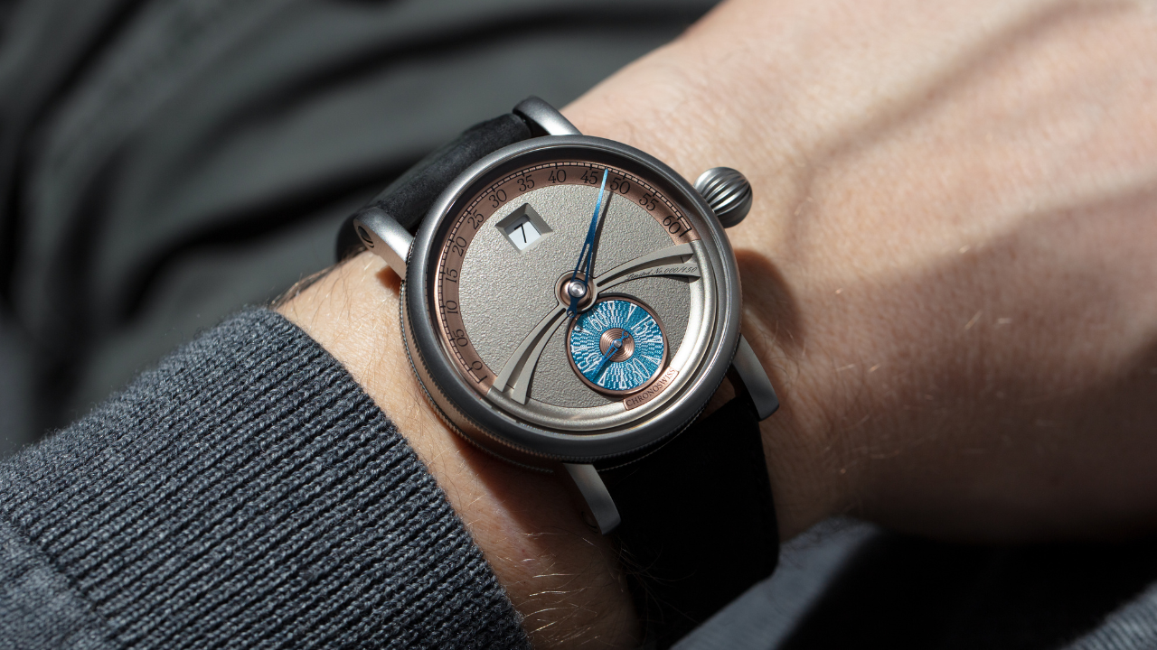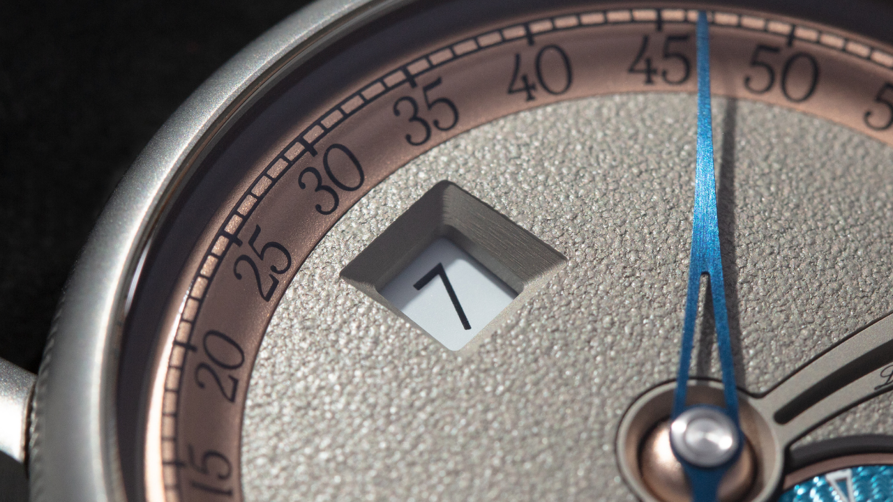 As aberturas não são apenas visuais, elas definem a forma como o tempo é percebido. Os minutos fluem continuamente na parte superior, os segundos avançam na parte inferior e, no centro, a hora salta de forma instantânea, criando uma leitura que exige atenção, mas recompensa com profundidade.