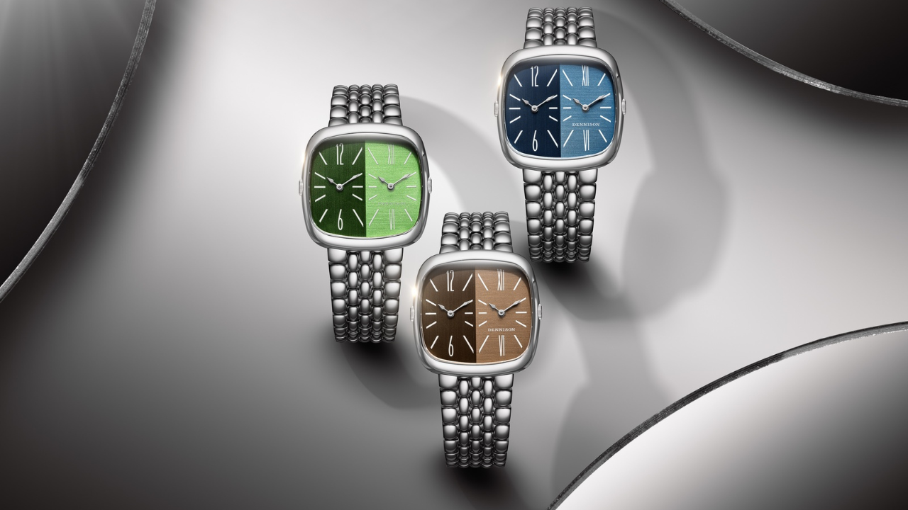 Em 2025, a Dennison lançou o ALD Dual Time com mostradores divididos ao meio por duas pedras semipreciosas diferentes. A proposta era incomum o suficiente para entrar em algumas listas de melhores do ano. A nova edição Shades mantém a mesma estrutura, mas troca as pedras por uma solução igualmente criativa e mais acessível.