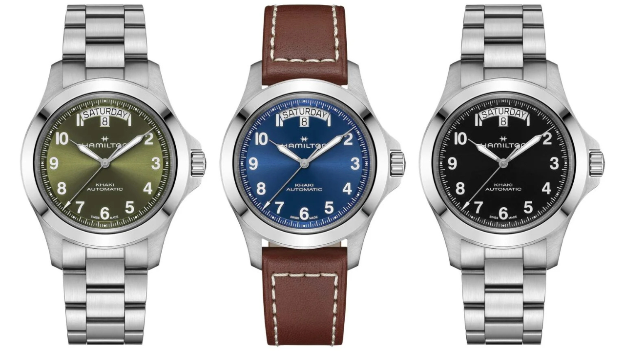 O Khaki Field King é a versão civil do Khaki Field, surgida após a Segunda Guerra Mundial quando a Hamilton começou a adaptar seu vocabulário militar para o público cotidiano. A nova geração do modelo chega com um mostrador revisado, mais resistência à água e um bracelete melhorado, mantendo o calibre H-40 com 80 horas de reserva de marcha.