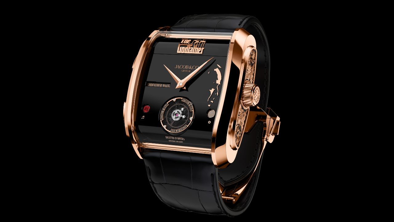 A Jacob & Co. lança The Godfather II, um relógio musical em ouro rosa 18k com caixa retangular de inspiração Art Déco e o calibre JCAM62, desenvolvido ao longo de três anos. A novidade central é uma complicação sem precedentes na relojoaria atual: um seletor de melodias que permite ao portador escolher entre duas composições da trilha de O Poderoso Chefão.