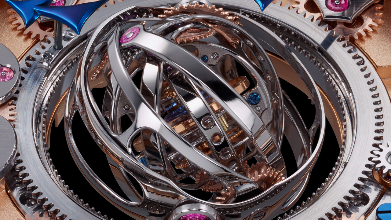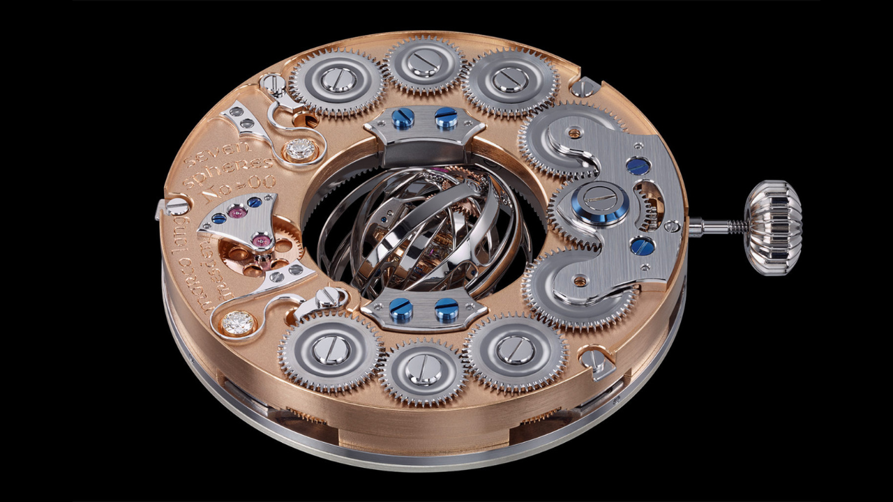 O resultado é um tourbillon central que gira em sete eixos simultâneos, uma das construções mais complexas já lançadas nessa categoria.