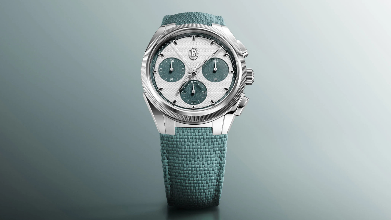 O vale do Verzasca fica no Ticino, na Suíça italiana. O rio que o atravessa tem uma transparência rara, com um tom verde cristalino que varia conforme a luz sobre as pedras de granito do fundo. É essa cor que a Parmigiani Fleurier usa como referência para a nova versão do Tonda PF Sport Chronograph.