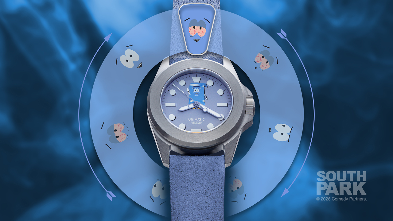 Towelie não é exatamente o candidato óbvio para uma colaboração de relojoaria. Mas é precisamente essa inadequação que faz sentido dentro da lógica das colaborações da UNIMATIC com o South Park: a marca italiana, treinada em design industrial no Politecnico di Milano, encontrou na série a mesma disposição para ignorar convenções que orienta sua própria abordagem ao design de relógios.