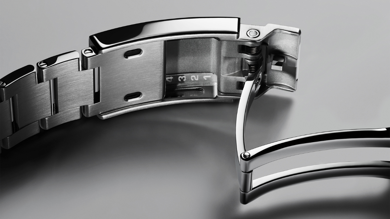 O ZENCLASP é o outro protagonista do lançamento. O fecho desdobrável foi desenvolvido ao longo de três anos, o equivalente a 1.800 horas de pesquisa, engenharia e otimização. São 41 componentes no total, incluindo 10 esferas de cerâmica que garantem tanto o travamento quanto o posicionamento preciso das peças internas ao longo do tempo.